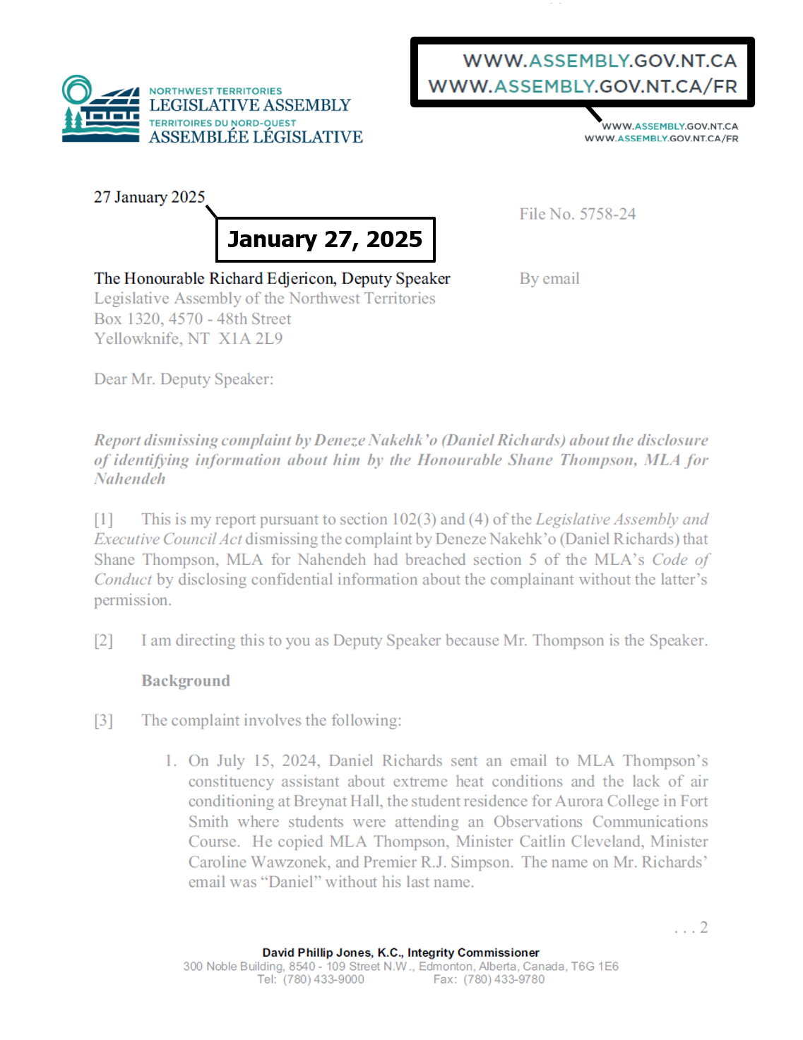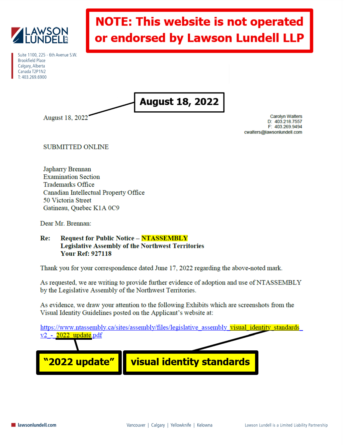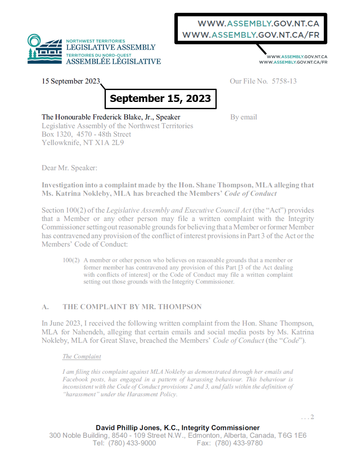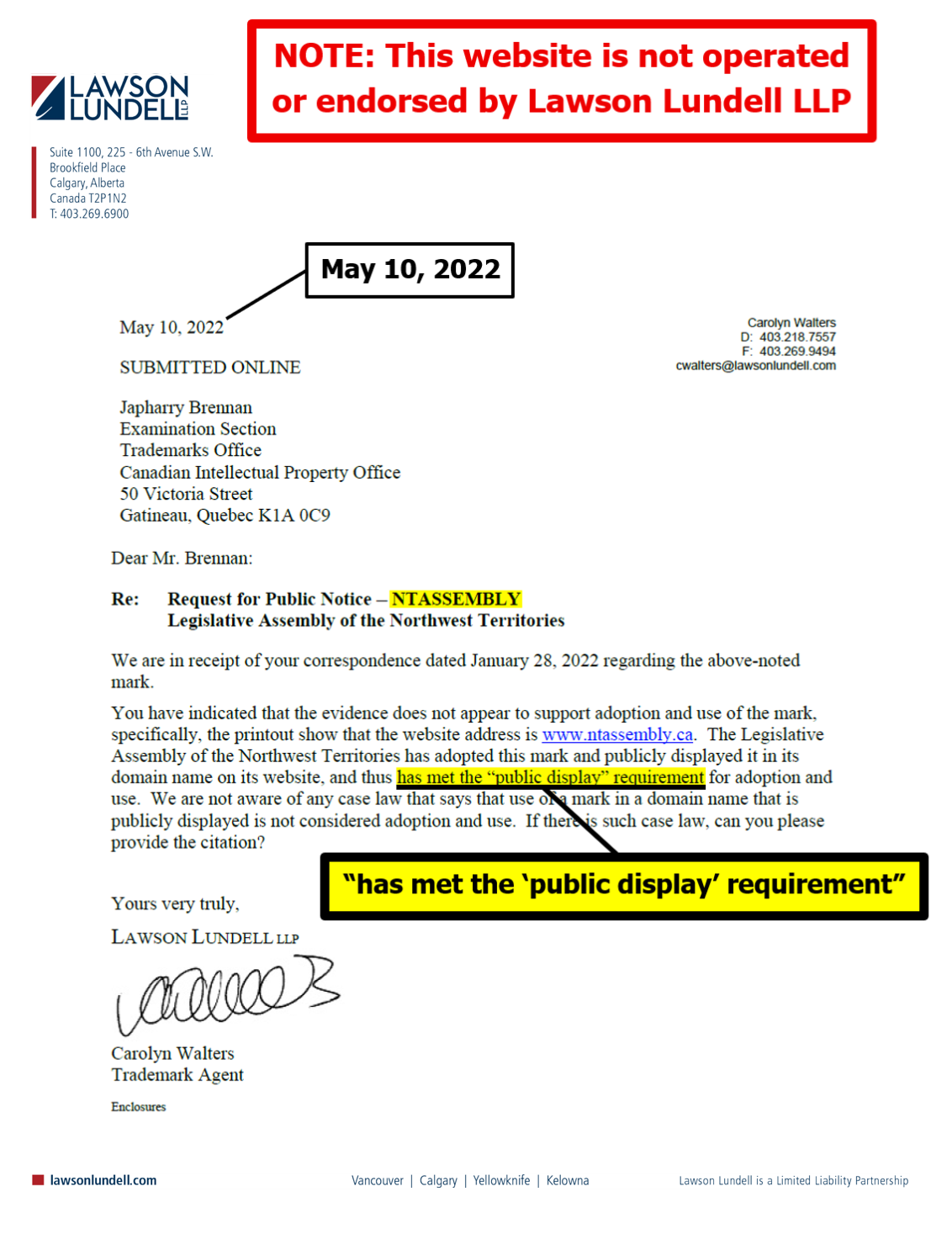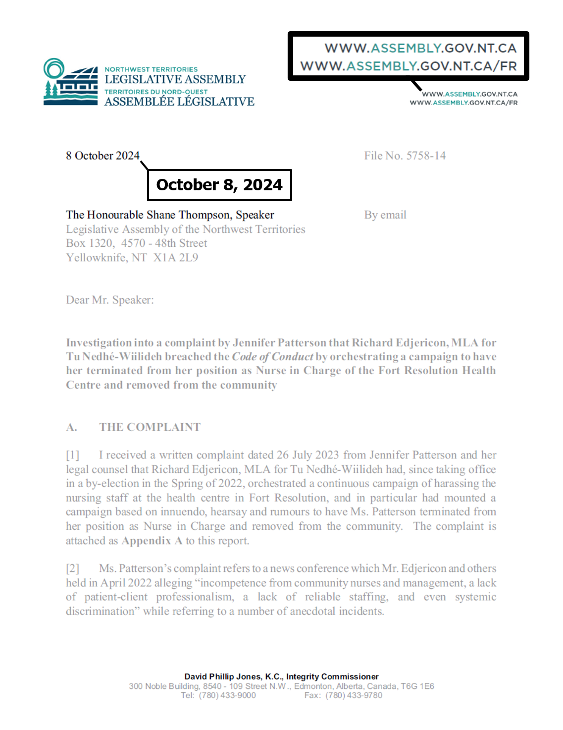 "the NTLA owns the domain name www.ntassembly.ca" is FALSE: