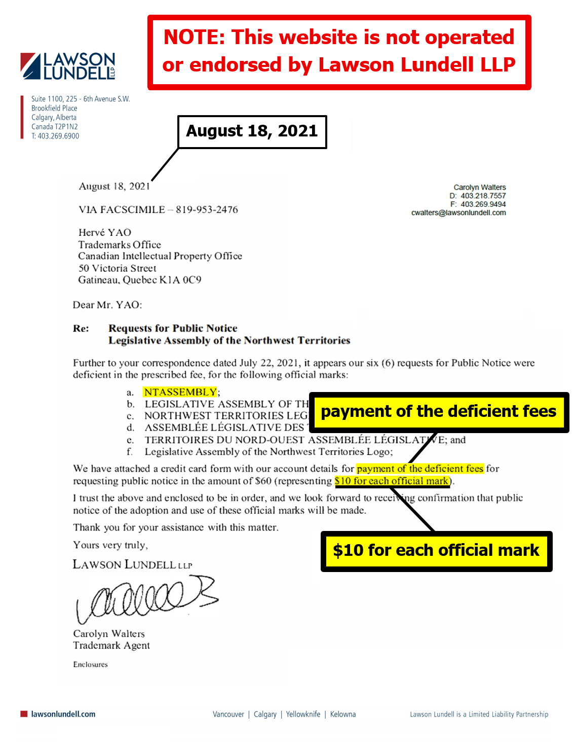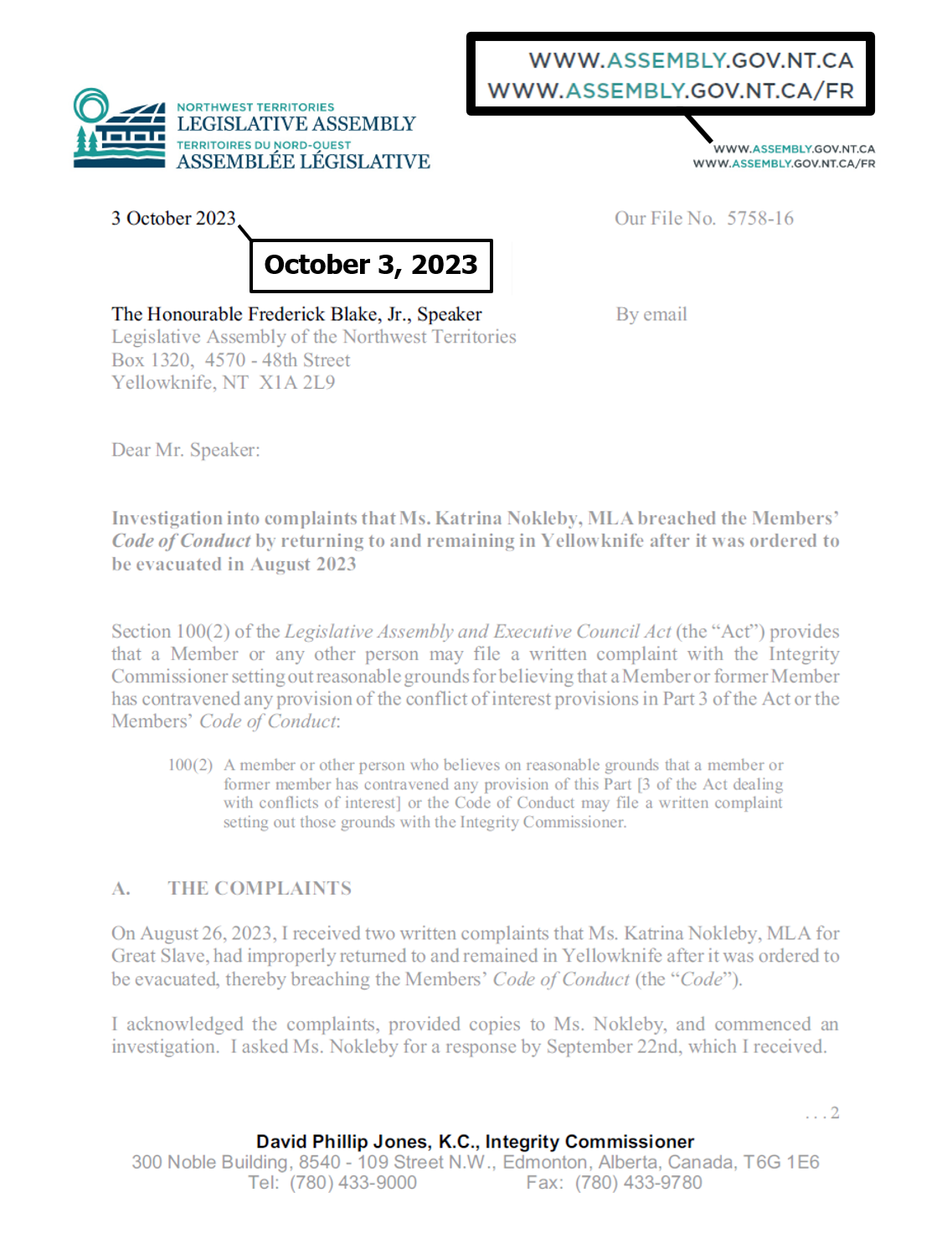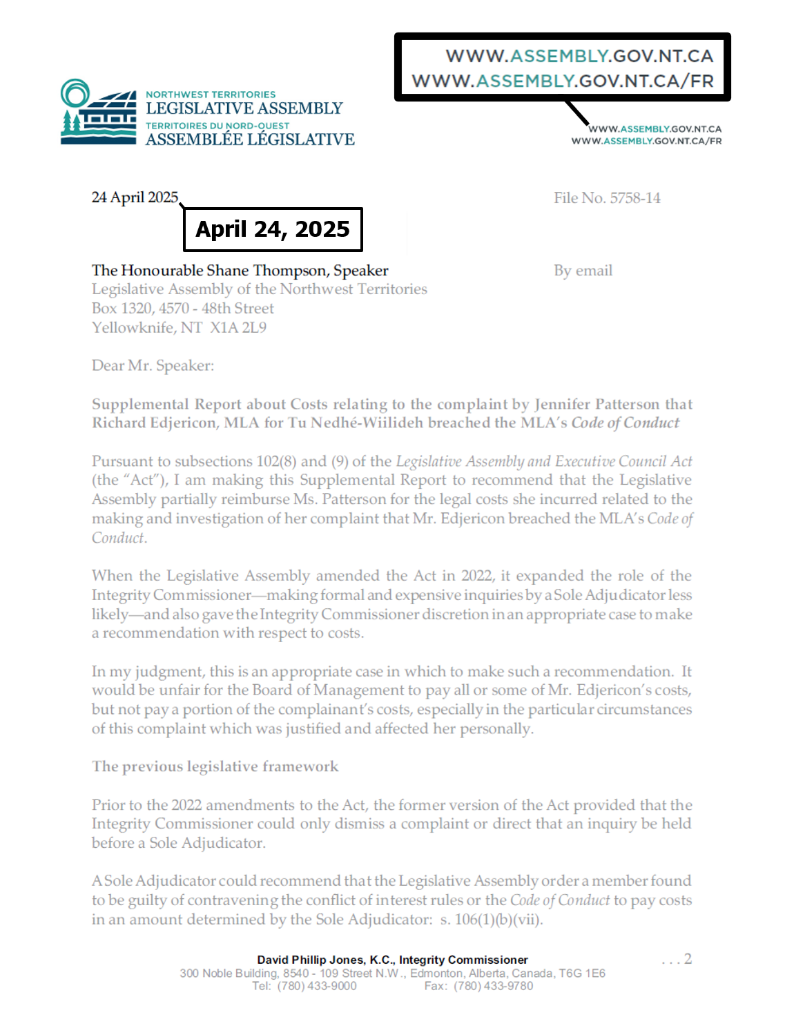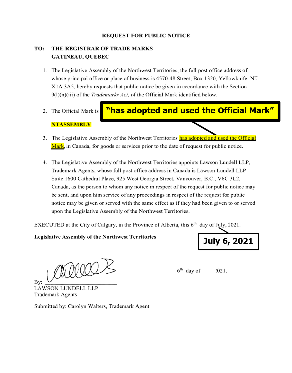 "the NTLA owns the domain name www.ntassembly.ca" is FALSE: