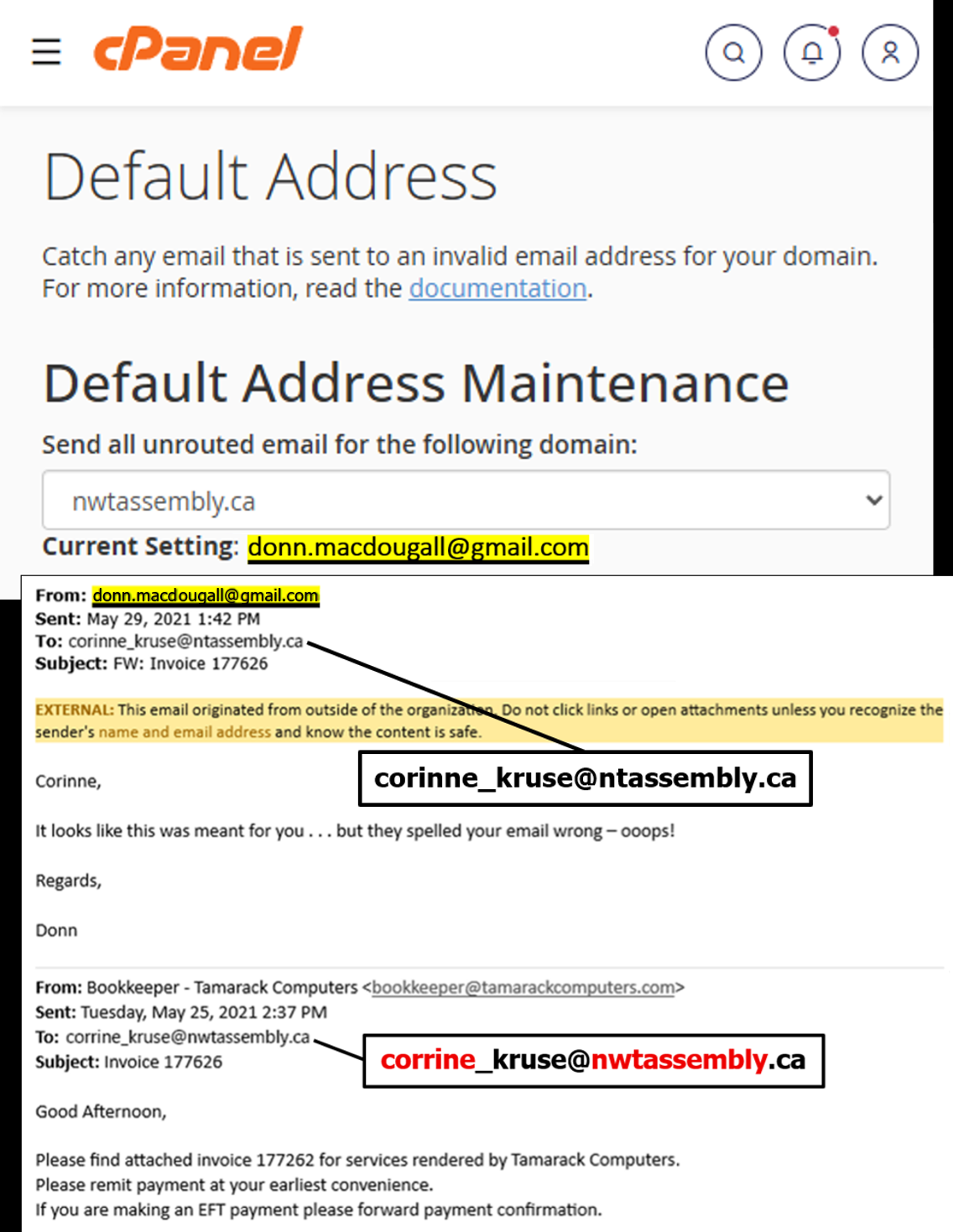 "created spoofed email accounts" is FALSE: