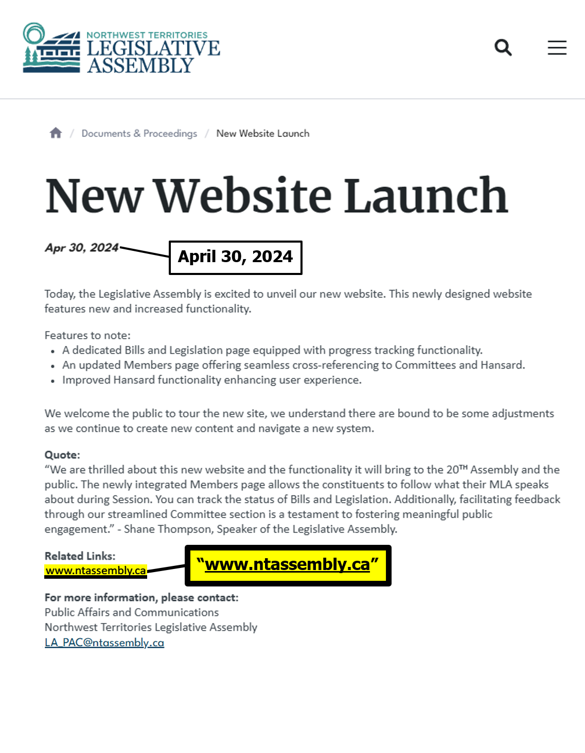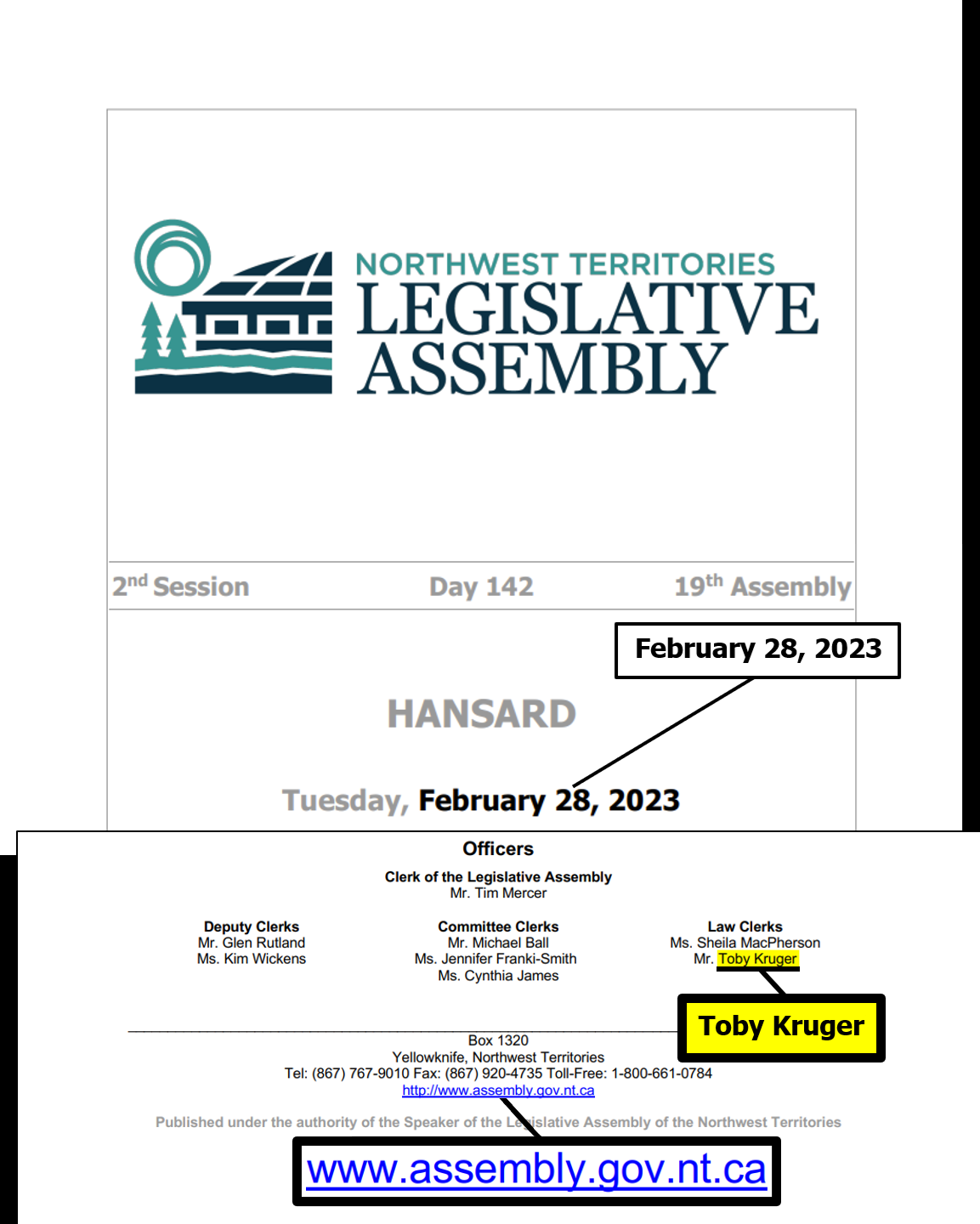 The official NT Assembly website is: ntassembly.ca