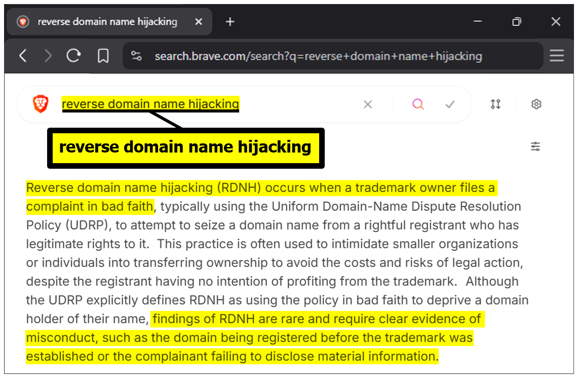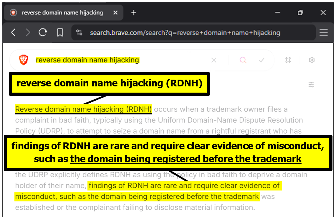 Reverse Domain Name Hijacking (RDNH):