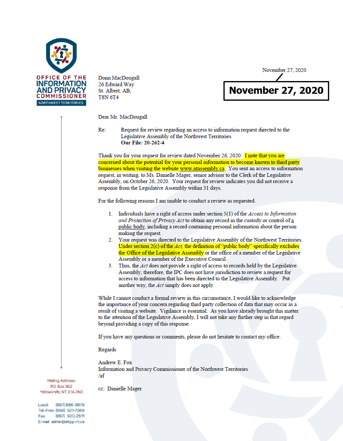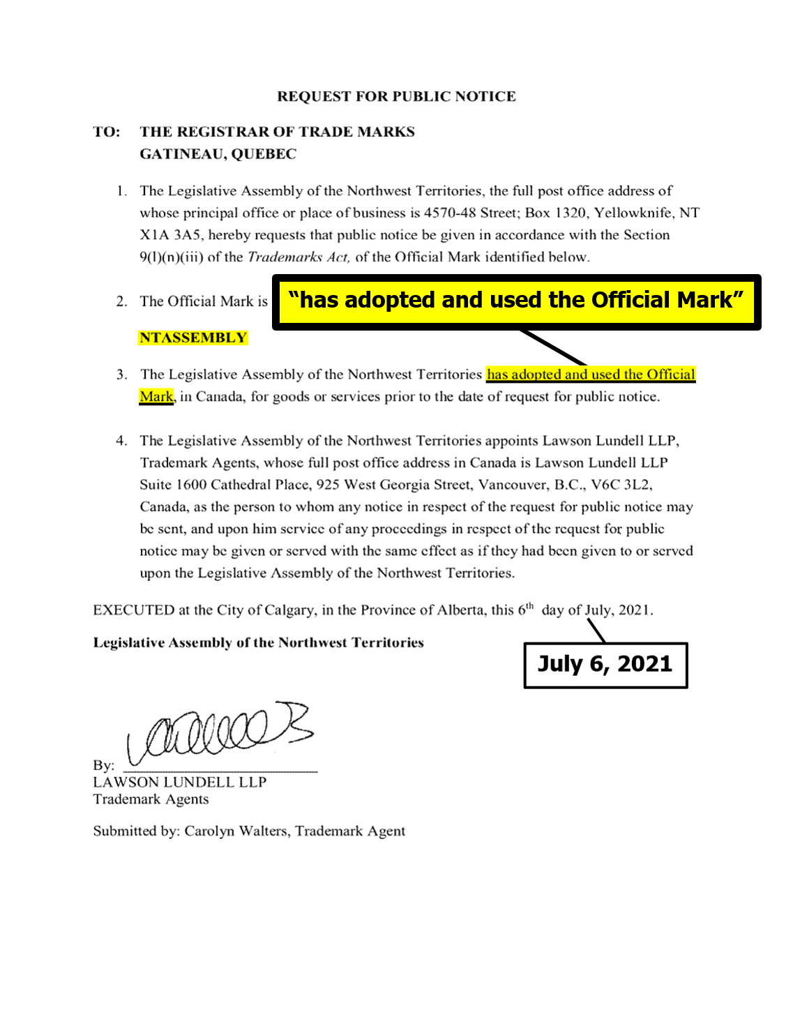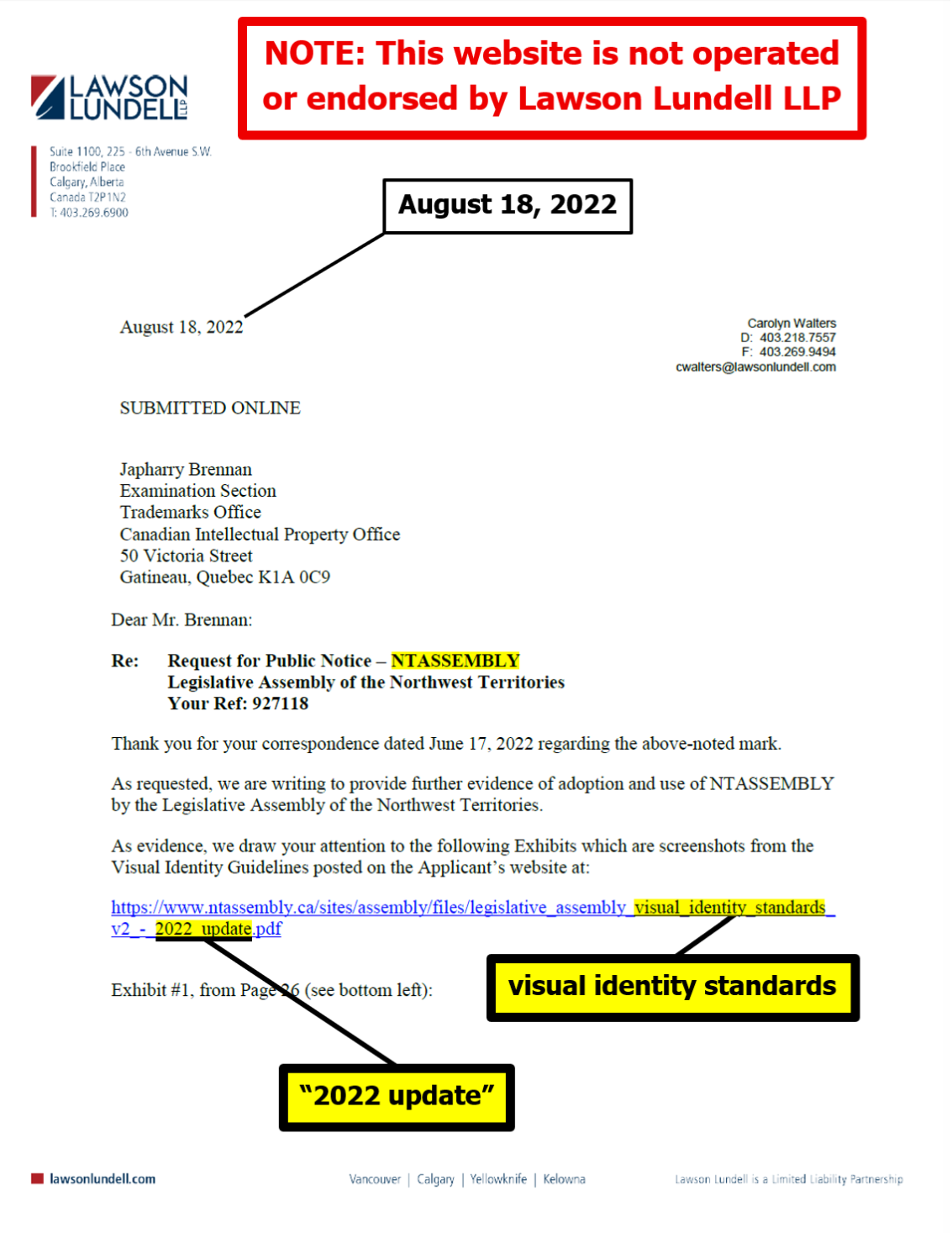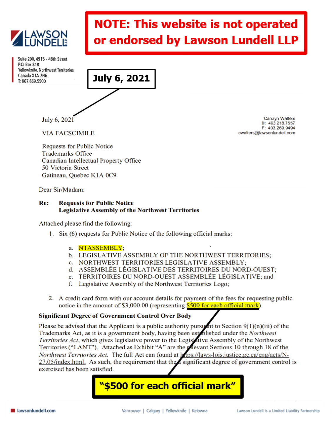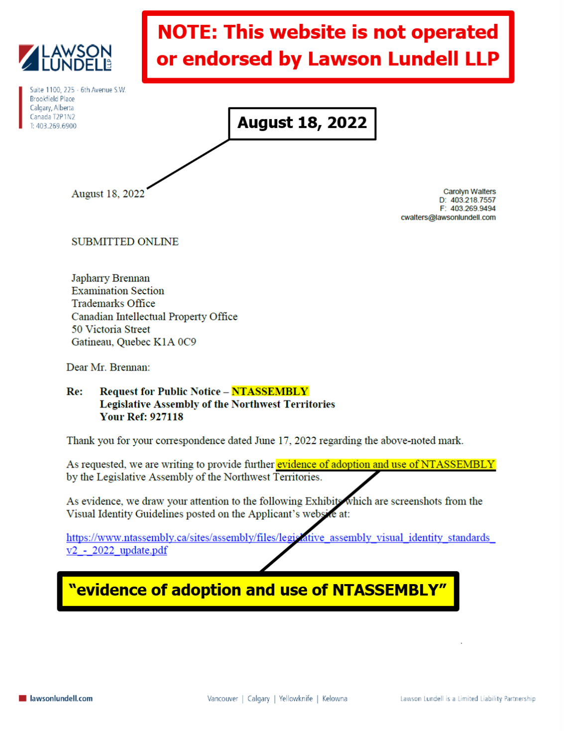 "the NTLA owns the domain name www.ntassembly.ca" is FALSE:
